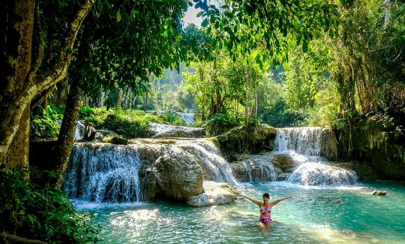 After lunch, embark on a scenic drive to the stunning Kuang Si Waterfall, where you can take a dip in the turquoise pools or explore the surrounding forest paths. On the way, visit local minority villages such as Ban Quay and Ban Ou to learn about the distinct cultures of these Laotian communities. There’s also an opportunity to visit the nearby bear sanctuary, dedicated to protecting the Asiatic black bear.