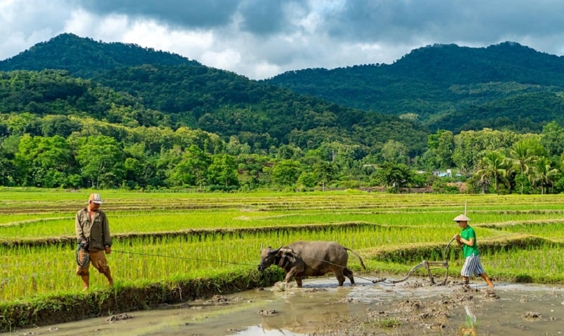 Visit Living Land Farm, located 5 km from town, to learn about traditional rice cultivation. Engage in seasonal activities such as identifying rice seeds, ploughing with a buffalo, planting, weeding, and harvesting rice. Sample fresh vegetables from the organic garden and enjoy an all-natural lunch featuring local rice products. Return to Luang Prabang in the late afternoon for the remainder of the day at your leisure.