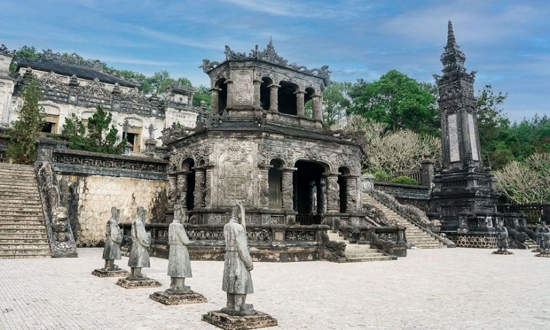 Explore Hue’s Imperial City, including the ancient Citadel and Imperial Palace. Visit Dong Ba Market to experience local produce and specialties. In the afternoon, take a dragon boat cruise on the Perfume River to Thien Mu Pagoda and visit the Royal Tomb of King Ming Mang or King Khai Dinh.
